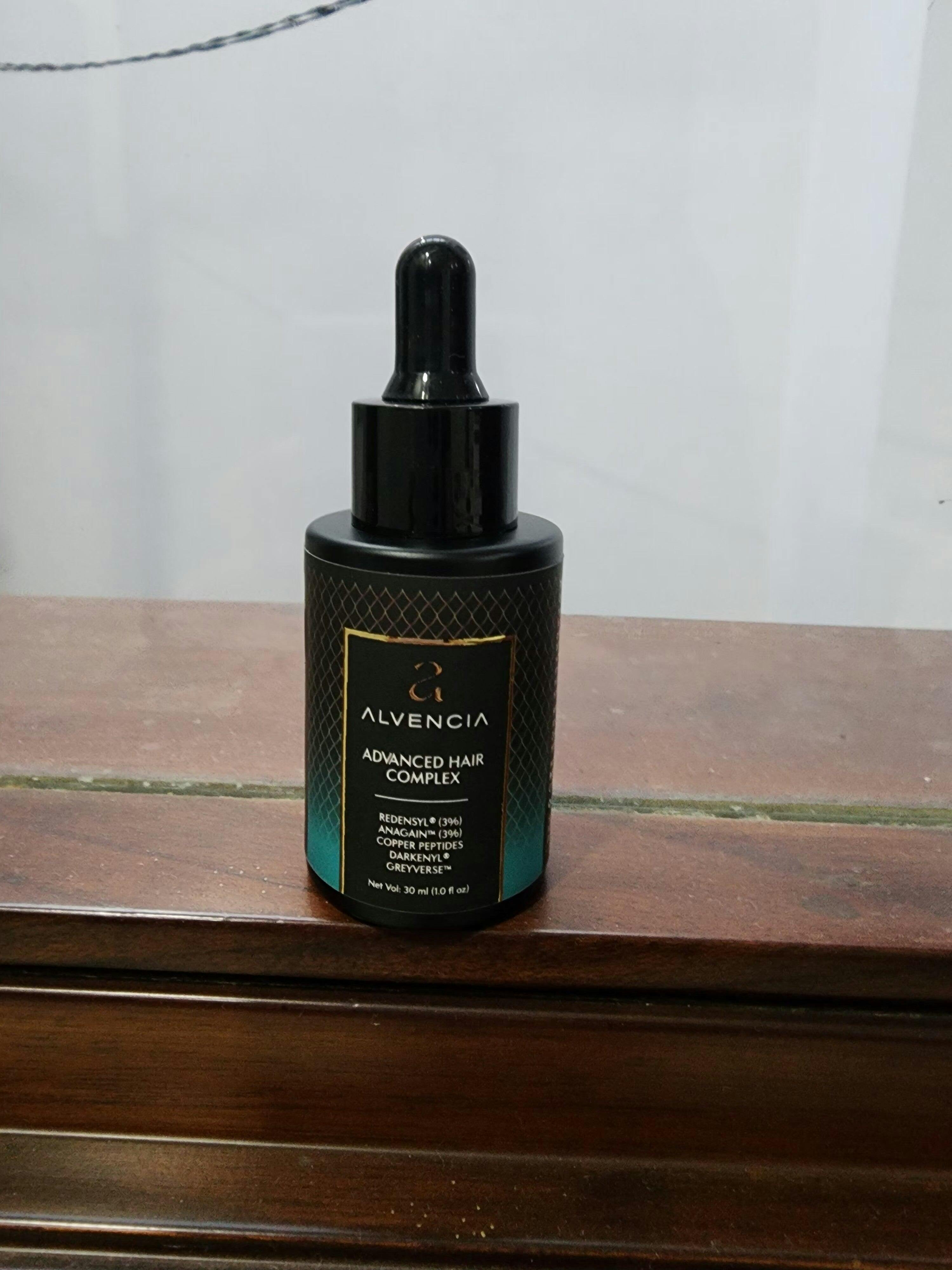 Alvencia™ is formulated with natural ingredients and clinically-proven actives. It is drug-free and does not contain Min*xidil or other harsh chemicals. No serious side effects have been reported. Some users may experience a mild tingling sensation upon application, which indicates the serum is working.
